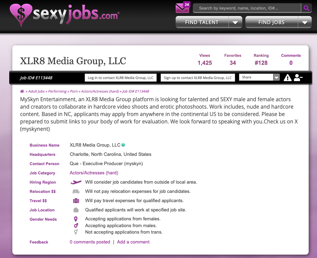 Our SexyJobs.com account is our primary platform for accepting new talent. This really shows us you are serious. Create an account, login and then message us there. From your profile we can see exactly what you as a creator brings to the table.